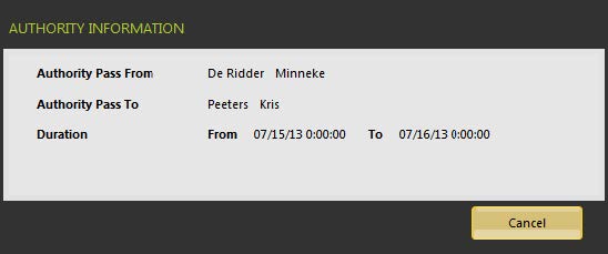 After selection of any of the authorities, you can click the Authority Detail button to see more information about the authority pass between delegates. This is shown below: