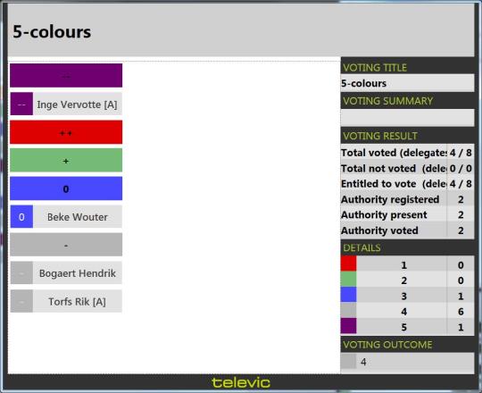 Groups are sets of delegates with common attribute(s), they have a common name and a color. Groups can be defined with a great level of flexibility: a delegate can be in none, one or many groups. A group can only contain a delegate once.