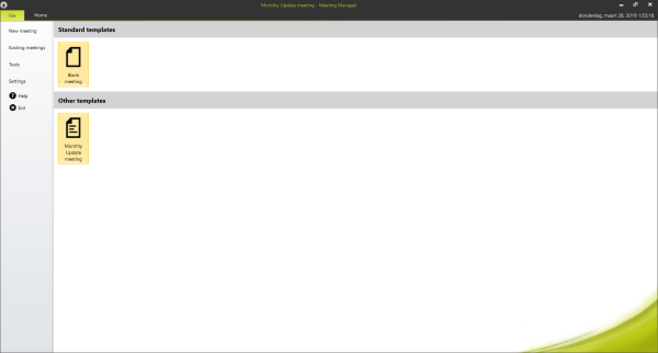 Another option is to open a Meeting Template, and specify the start of the meeting from the data already contained in the Meeting Template. To do this, select any of the Meeting Templates in the lower list. Additionally, you can delete Meeting Templates by right clicking on the Meeting Template, and selecting Delete this template. After confirmation, the Meeting Template is deleted.