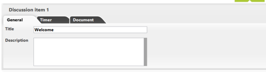 - General: this tab lets you define the title and the description of the agenda item.