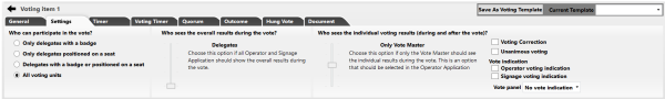 - Vote panel: select here what the vote panel should show after the delegate has cast his vote.