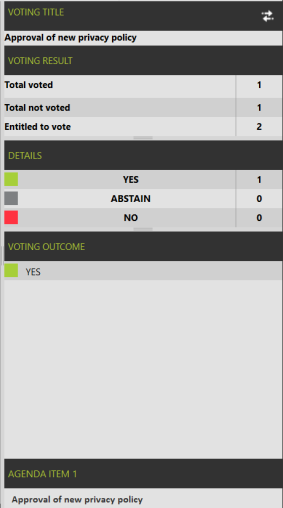 When a voting session is ongoing or finished, and voting results are available, these become available on the right side of the Operator Application where you normally find the speaker and request list.