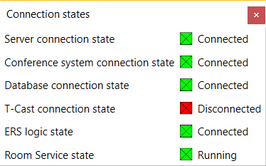 In the bottom part of the screen you find some diagnostics information. By clicking “Connections” a window pops up with the status of the connections.