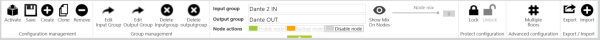 When you select a node in the matrix (input and output group), the node becomes highlighted and the ribbon shows the input and output group. When you select a node, the Node actions become available. There are three possible actions: