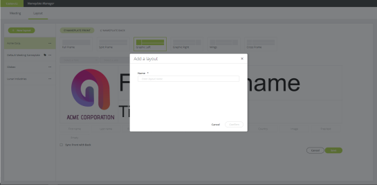 - Define the name of the layout in the popup and click Confirm.