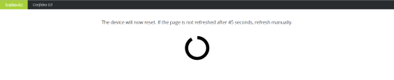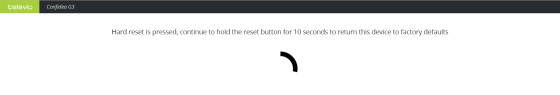 - When you release the button a screen will appear to indicate that the device will reset. After this action the IP address will be reset to its default value.