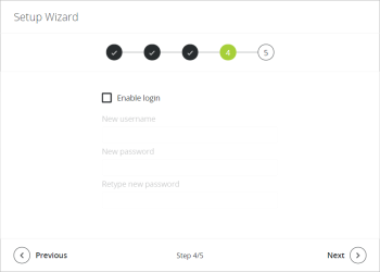 - In step four you can define a user name and password to login to the web server. If you do not enable this, you can leave these fields blank on the login screen.