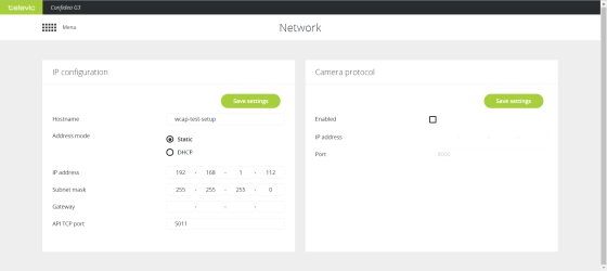 Static: in this mode the IP address and subnet mask are fixed and must be inserted into the appropriate fields. DHCP: DHCP (Dynamic Host Configuration Protocol) is a protocol used by the WCAP to automatically obtain the parameters necessary for operation in an IP network. This reduces system administration workload, allowing the WCAP to be added to the network with little or no manual configuration.