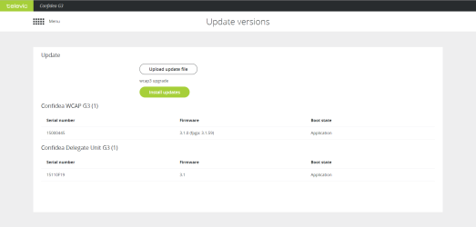 - To check whether you have the latest version, go to https://www.televic-conference.com/en/confidea-g3-software-updates and select Confidea G3. On these pages you can also see the latest release notes.