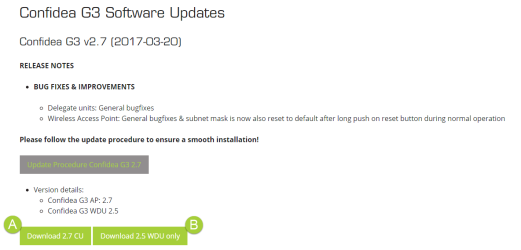 - On this page you can see the firmware version of the WCAP (A) as well as the firmware version of the delegate units (B)