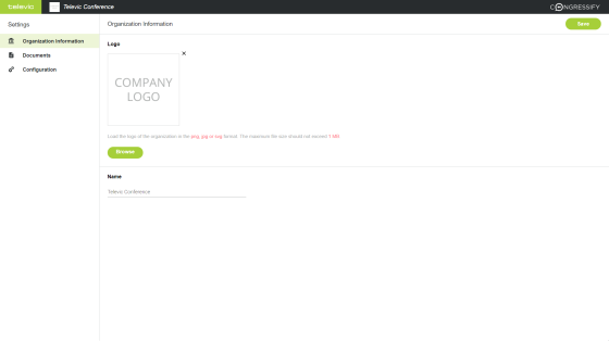 Figure 1-6 The Configuration page of the Congressify settings