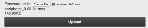 Before uploading a new file, please manually restart the central unit and re-open the webbrowser. Then choose the file: “peripheral_x-xx-xx.mcs” and click “Upload”.