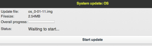 Choose the file “os_x-xx-xx.img” and press “Upload”, “Start update”. The update takes about 1 minute. After completion please restart both webserver and central unit.