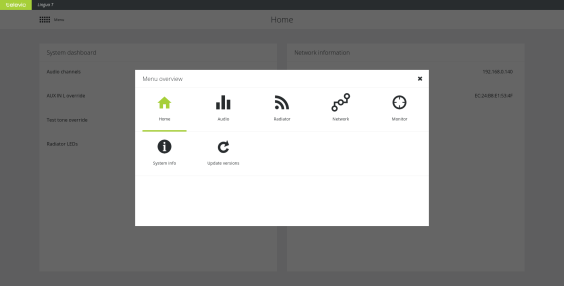 CoCon has an intuitive web server that allows you to configure different transmitter and radiator settings. With the web server you can configure the audio settings, the radiator, the network settings, some monitoring settings, licensing and updates.