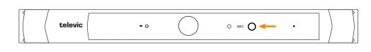 The LED next to the recording button shows the status of recording. The CoCon AE-R has an internal recording capacity of 8 GB. Depending on the selected bitrate you can record over 100 hours of audio. Use the USB port on the back to expand the recording memory.