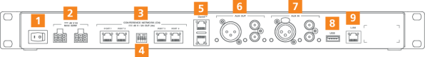 The CoCon audio engine is a 19" rack mountable device that provides audio processing and signal handling required for the CoCon network. It controls all delegate units and interconnects to other systems either via the external audio connections or control ports.