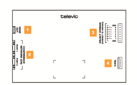 Video stream selection can be done via dry contacts or by using the Plixus V-SEL accessory. Connect the V-SEL to the Video-OUT Box is done through the included micro USB cable.
