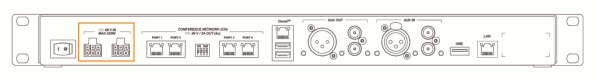 You can supply power the units over Ethernet. Each conference ports can supply a maximum of 100 W.