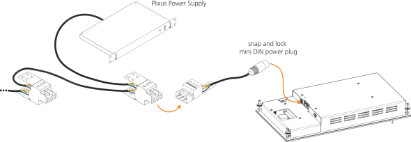 Figure 1-39 How to power the uniCOS unit using the Plixus Power Supply and the supplied WAGO connector