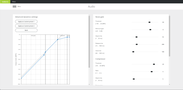 The dynamics processor settings are global settings that are applied to every microphone unit individually. These settings determine the dynamic range of the audio input.