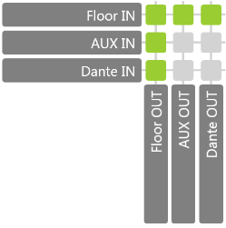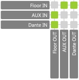 By default there are three preconfigured basic routing options. They are explained here with the picture of the CoCon routing matrix: