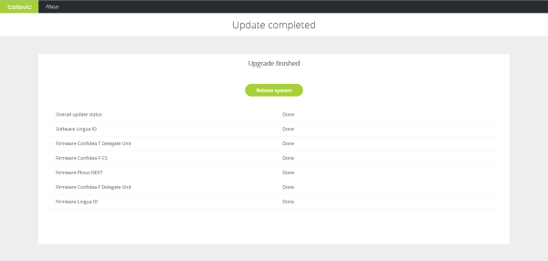 When the update is complete click Reboot system to restart this the system. This is required for the update to be successful.